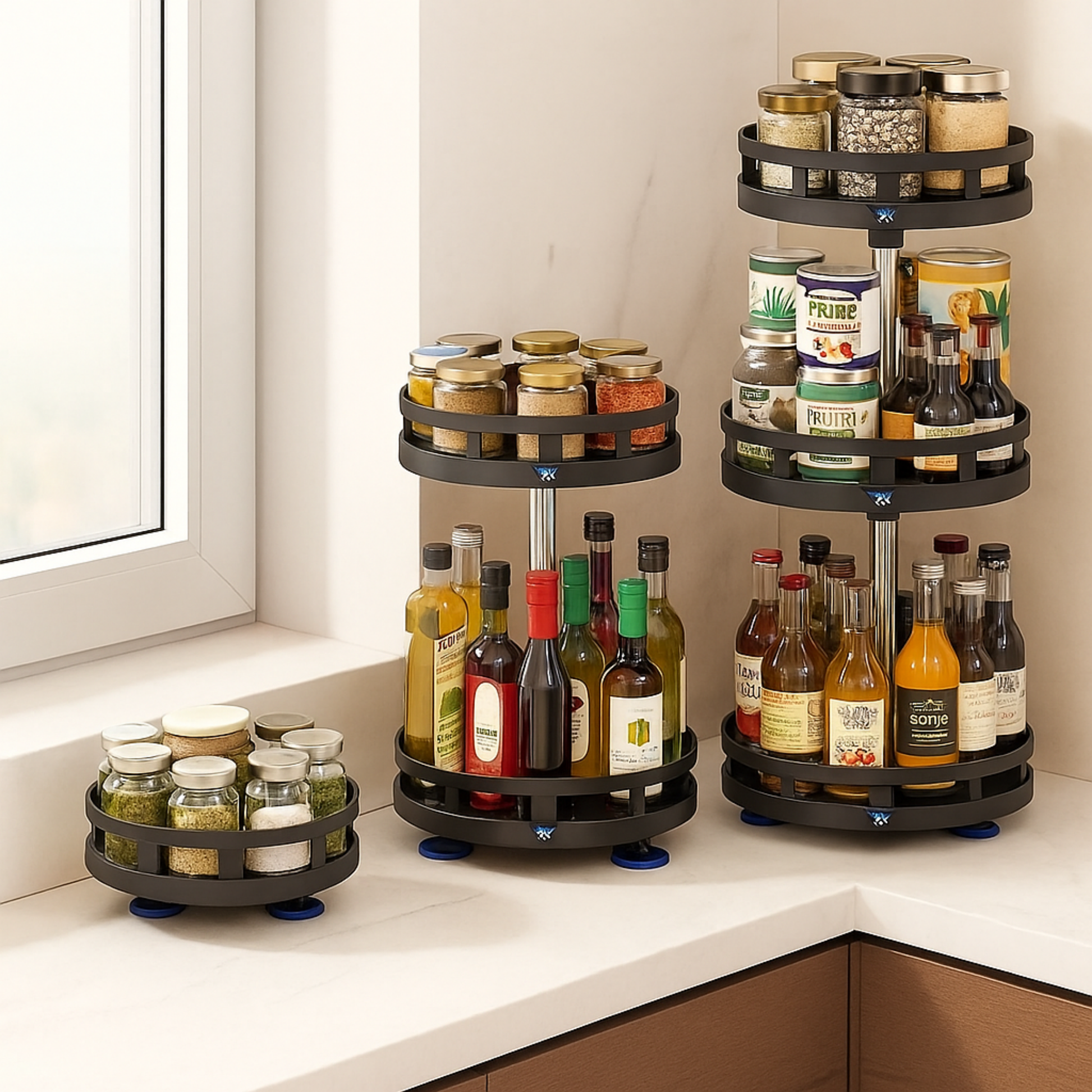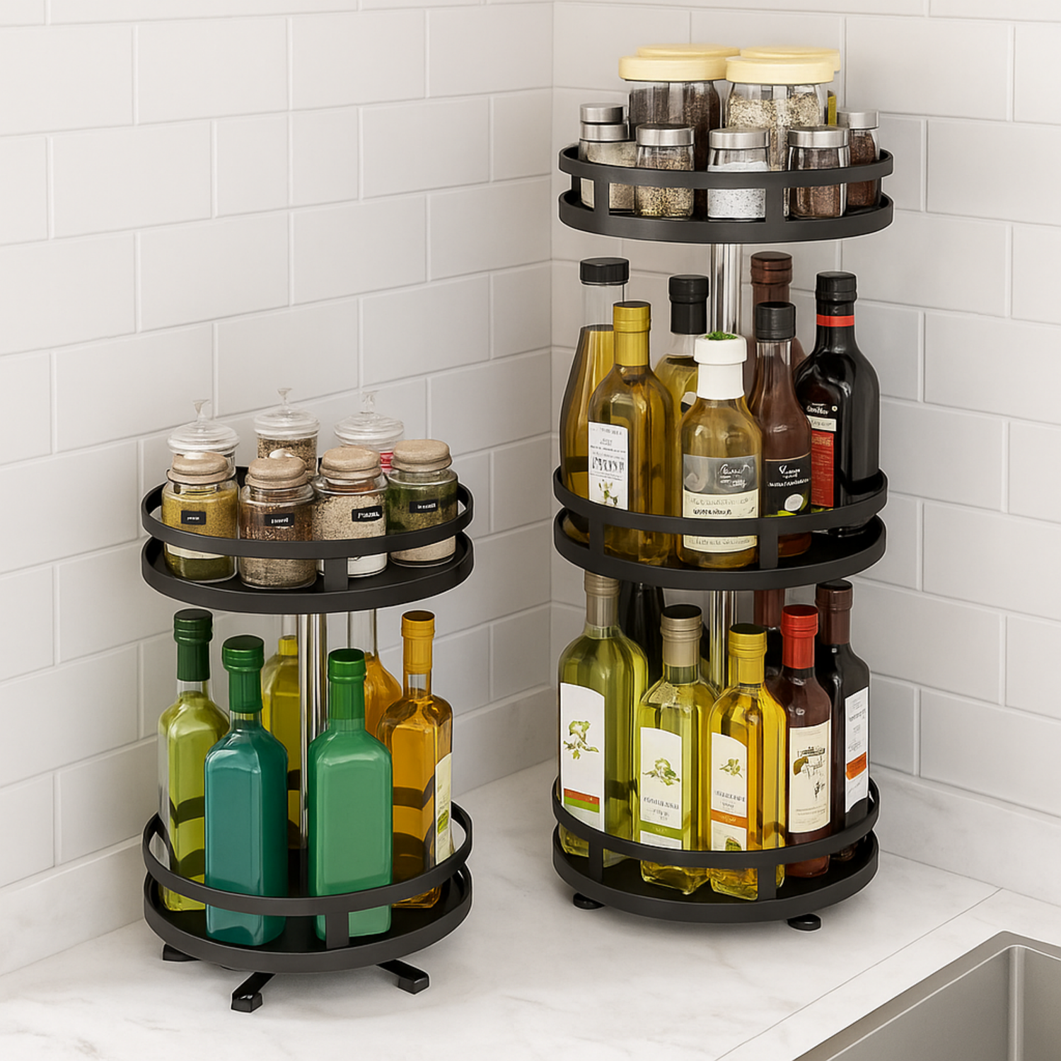 Spice Rack, 360° Rotating Countertop Organizer for Easy Access to Herbs & Kitchen Clarity